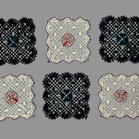 This generous donation of decorative textile artworks from Cathy Clark is a tour de force of talent and devotion to the world of needlework, specifically her world of knitting and Shetland yarns. "I fell in love with Shetland sheep and their fleeces," she confesses, "and that has ruled my life since 2007."